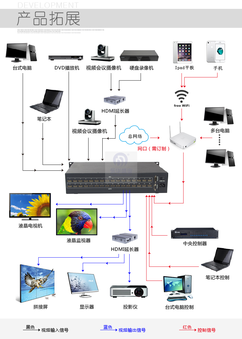 n 16路HDMI音視頻信號輸入,16路 HDMI音視頻信號輸出,可視頻同步切換或分離切換,同步快速切換到任意一路或多路通道輸出上